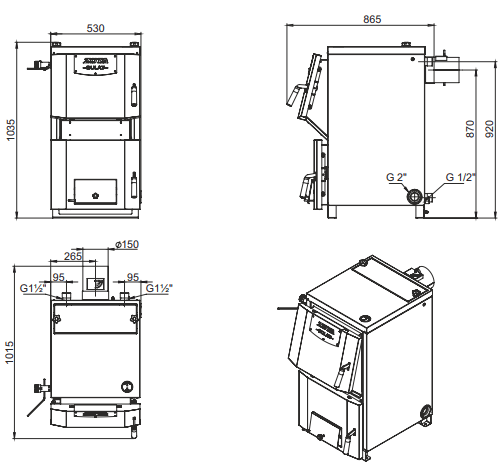 - Котел оснащен системой подачи вторичного воздуха, установлен термометр для измерения температуры подачи воды.