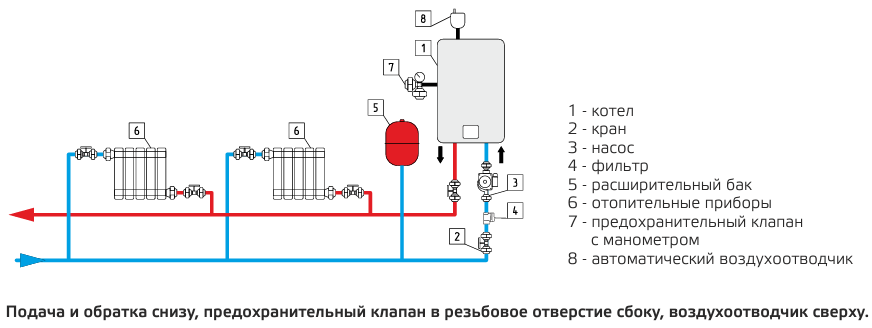 - А можно и вовсе использовать два патрубка сразу, получив два отопительных контура.